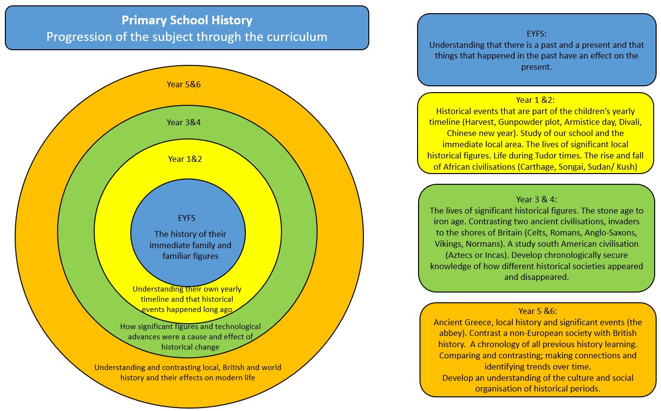 Children make connections with previous learning, both in history and other subjects as they make comparisons between time periods and contexts and empathise with people from the past. Children learn about how and why power changes hands over time; turning points in the history of our world, both in the local area, and further afield, as well as a diverse range of significant historical figures who have had an impact on history.