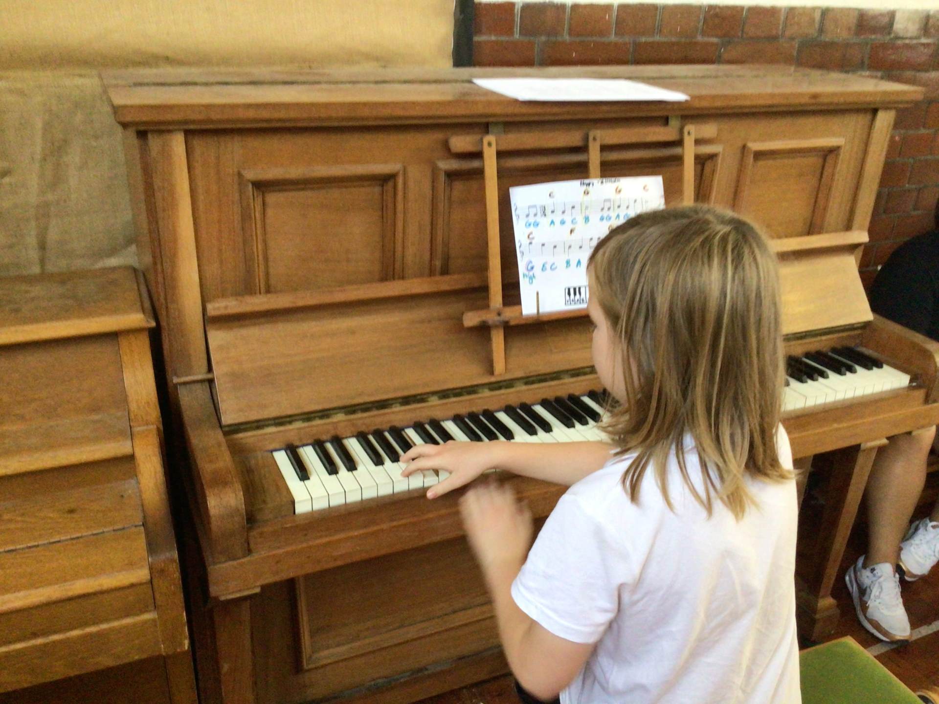 Children experience the following musical skills: listening, singing, playing, composing, improvising and performing. Children are guided to apply these skills in meaningful ways, such as linking a composition to the class project.