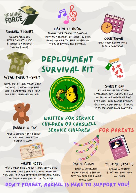 20-25% of the children in our school are from service families. We have been educating service families for a very long time; before Dalton Barracks was an army base it was an RAF base and children of RAF parents came to Carswell! These days the service children at our school are from 4 Reg and 7 Reg. Due to the number of service children we have we have high mobility so work hard to integrate children to our community.